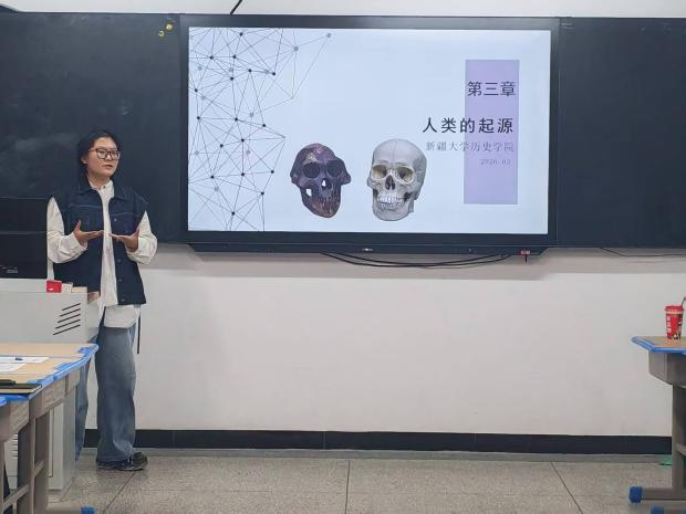 王安琦以现代人的体质特征为切入点,生动讲解了人类进化过程中骨骼发生的一系列变化,将体质人类学知识与人类演化历程相结合,课堂内容直观且富有启发性。张纪伟聚焦中国政治制度史学科的演变,梳理了该学科从古代起源、近代建设尝试到20世纪以来最新研究方向的发展脉络,展现了严谨的学术史梳理能力。叶凯歌以铸牢中华民族共同体意识为主题,从深刻内涵、重大意义和实践路径三个维度,系统阐释了中华民族共同体意识的时代价值与育人方向,课程兼具理论深度与现实关怀。